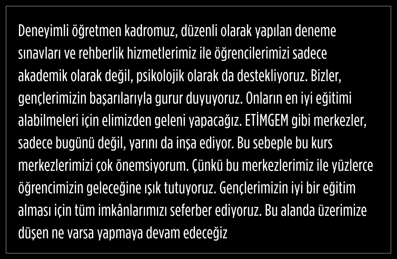 "merkezlerimiz ile yüzlerce öğrencimizin geleceğine ışık tutuyoruz"