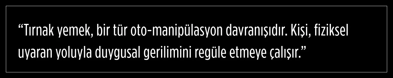 Psikiyatristler, tırnak yemenin genellikle kaygı, sıkıntı, stres, utanç ya da can sıkıntısıyla başa çıkma yöntemi olarak ortaya çıktığını belirtiyor. Beyindeki ödül merkezi (dopamin sistemi), bu davranışı geçici rahatlama ile ilişkilendirir ve alışkanlık döngüsünü besler.