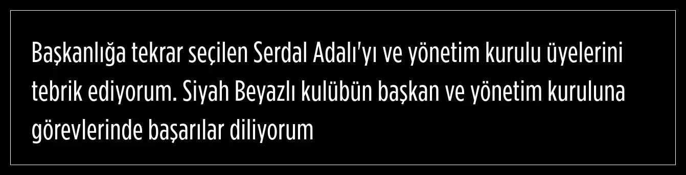 Osman Aşkın Bak, mesajında başkanlığa tekrar seçilen Serdar Adalı ve yönetim kurulu üyelerini tebrik ettiğini ifade etti.