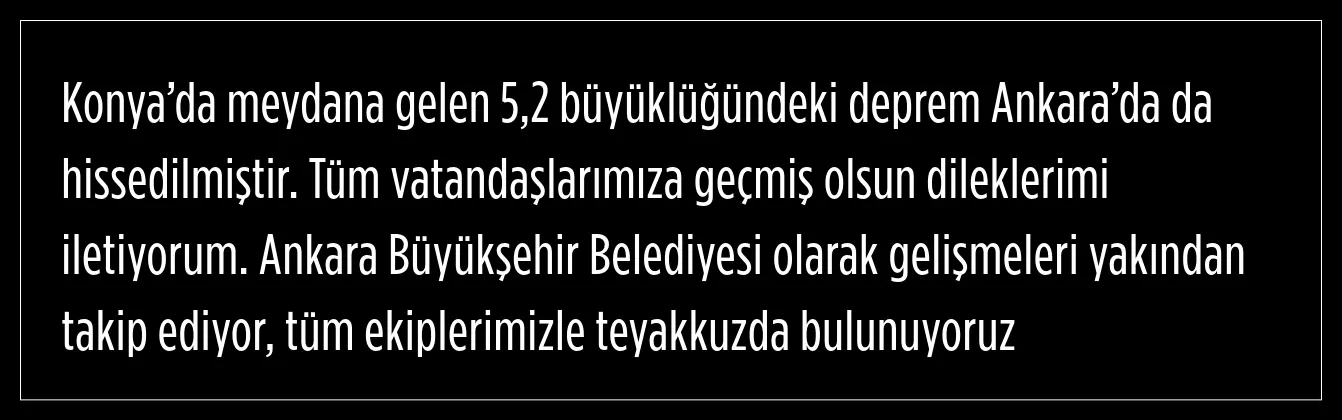 Mansur Yavaş, Konya'da meydana gelen ve Ankara'da da hissedilen deprem sonrası açıklama yaptı. Yavaş, ''Teyakkuzda bulunuyoruz!'' dedi.