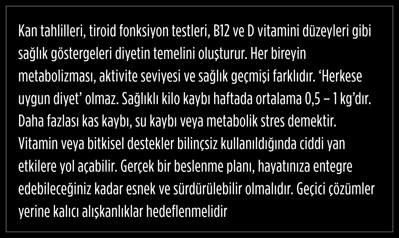 Deniz Pirçek, kilo vermek isteyen bireylerin öncelikle sağlık kontrolünden geçmesi ve mutlaka bir uzmandan destek alması gerektiğini belirtti.
