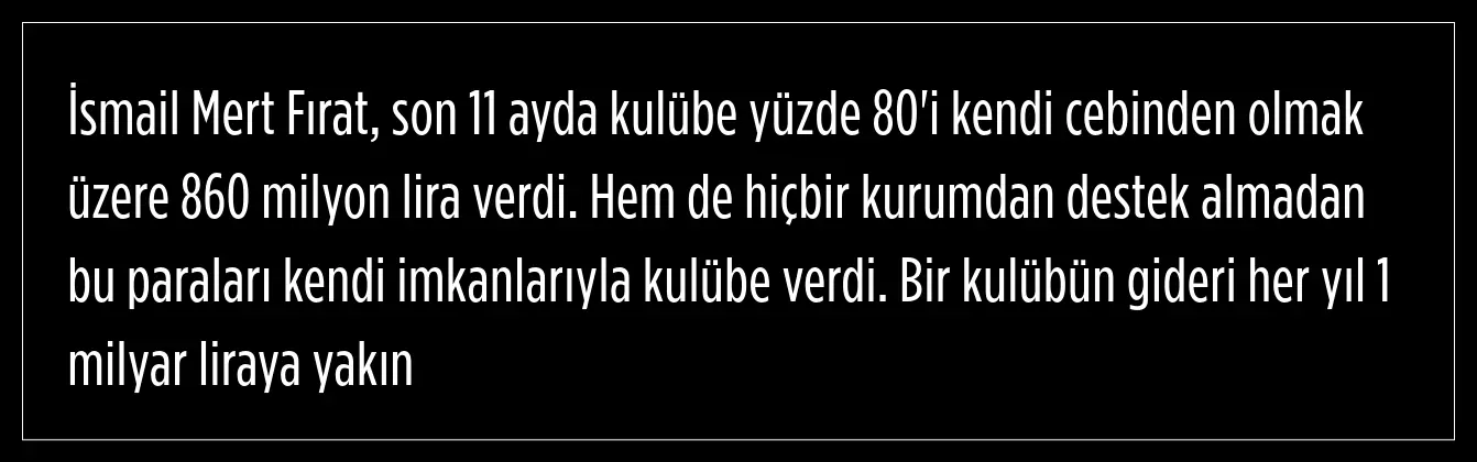 Faruk Koca, İsmail Mert Fırat’ın geçen yıl hazirandaki seçimden bu yana geçen 11 ayda, kulübe büyük ölçüde kendi imkanlarıyla ciddi bir maddi katkı sağladığını ifade etti.