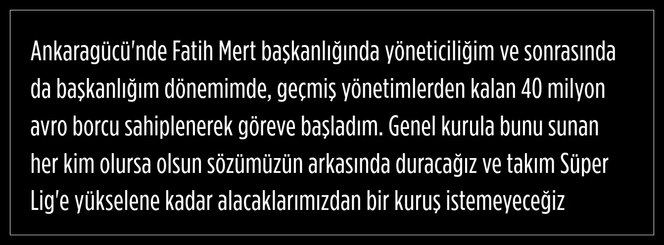 "Kulübe verdiğimiz paraları, Ankaragücü, Süper Lig'e çıkana kadar asla istemeyeceğiz"