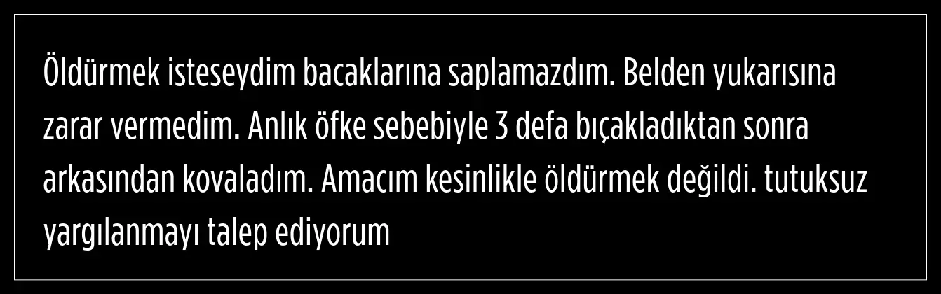 C.A, hakimlikteki sorgusunda, amacının öldürmek olmadığını ifade ederek, tutuksuz yargılanmayı talep etti.