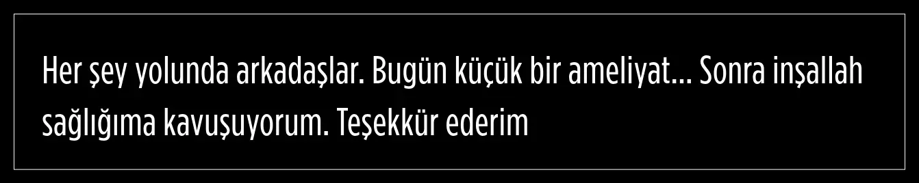 Ünlü isim, hastane odasından bir paylaşım da bulundu ve ameliyat olduğunu açıkladı.