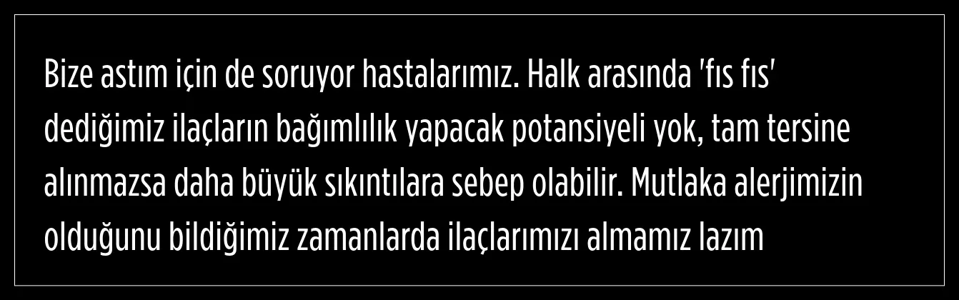 Alerji ilaçlarının düzenli kullanımda bağımlılık yapmayacağını aktaran Doç. Dr. Özsarı, şu ifadeleri kullandı: