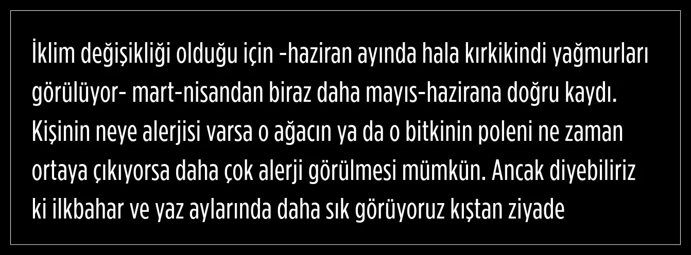 Polen alerjisinin bahar mevsiminin geldiği aylarda saha sık gördüklerini söyleyen Doç. Dr. Emine Özsarı, şöyle devam etti: