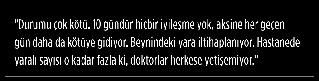 Saldırıda Mira’nın kafasına isabet eden şarapnel parçası, küçük kızın kafatasını kırdı ve beynine baskı yapmaya başladı. Beyindeki hasar, Mira’nın istemsiz hareketler yapmasına yol açıyor. Başının büyük bölümünü saran dikişlerin farkında olmayan Mira, kontrolsüz hareketleriyle zaman zaman kendini de riske atıyor.