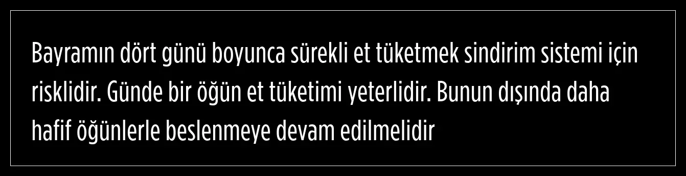 Prof. Dr. Bilgiç, bayram sabahına hafif bir kahvaltıyla başlanması, etin ise öğle veya akşam yemeğinde tüketilmesi gerektiğini aktardı.