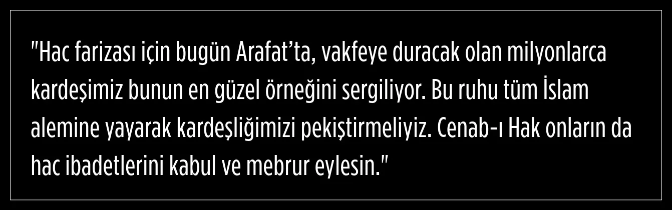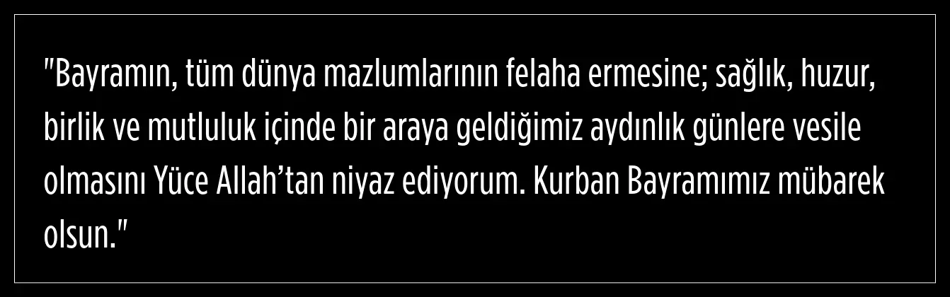 İnançların ve bayramın yalnızca ibadetlerden ve ritüellerden oluşmadığına dikkat çeken Destici, imkânı olan kişilerin ihtiyaç sahiplerine el uzatılması gerektiğini belirtti. Destici, bunun, İslam'ın bir gereği olduğunun altını çizdi. Destici, Kurban Bayramı'nda başta Türk ve İslam dünyası olmak üzere dünya genelinde refah, huzur ve barış ortamının hakim olmasını diledi. Hacı adayları, şehit aileleri, hem yurt içinde hem de yurt dışında Türk milletinin güvenliğini sağlamak adına mücadele veren güvenlik güçleri, askerler, polisleri, istihbarat kuruluşu üyeleri ve güvenlik korucuları başta olmak üzere Türk milletinin ve bütün İslam dünyasının Kurban Bayramı'nı tebrik eden Destici, paylaşımını, şu ifadelerle sonlandırdı: