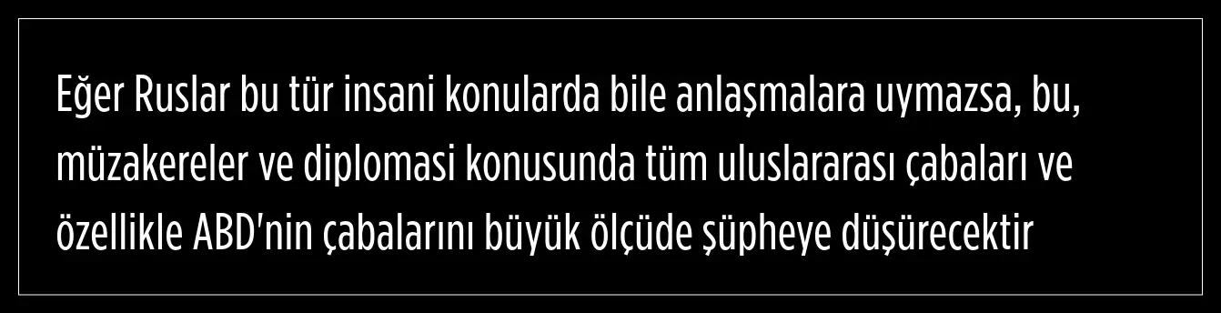 Zelenskiy, esir takası ve asker cenazeleri değişimi yönünde ellerinden geleni yapmaya devam ettiklerini ifade ederek, İstanbul'da üzerinde anlaşılan binden fazla esir için Rusya'dan maalesef hala tam listeler olmadığını dile getirdi.