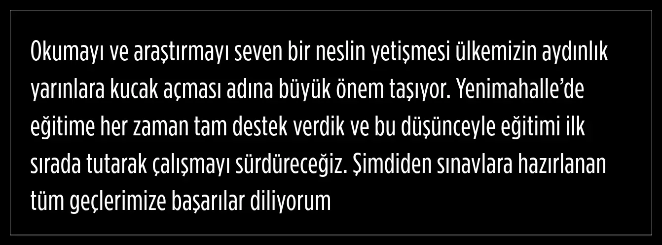 Yenimahalle Belediyesi, Liselere Geçiş Sistemi (LGS) ve Yükseköğretim Kurumları Sınavı'na (YKS) hazırlanan öğrencilere yönelik sunduğu kütüphane hizmetleriyle dikkat çekiyor. İlçedeki 10 ayrı noktada hizmet veren kütüphaneler, özellikle sınav tarihleri yaklaşırken gençlerin en çok tercih ettiği mekânlar arasında yerini aldı.