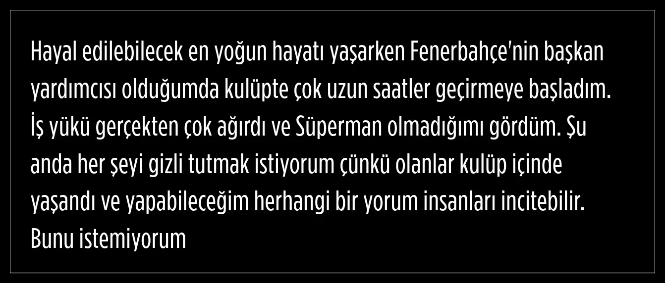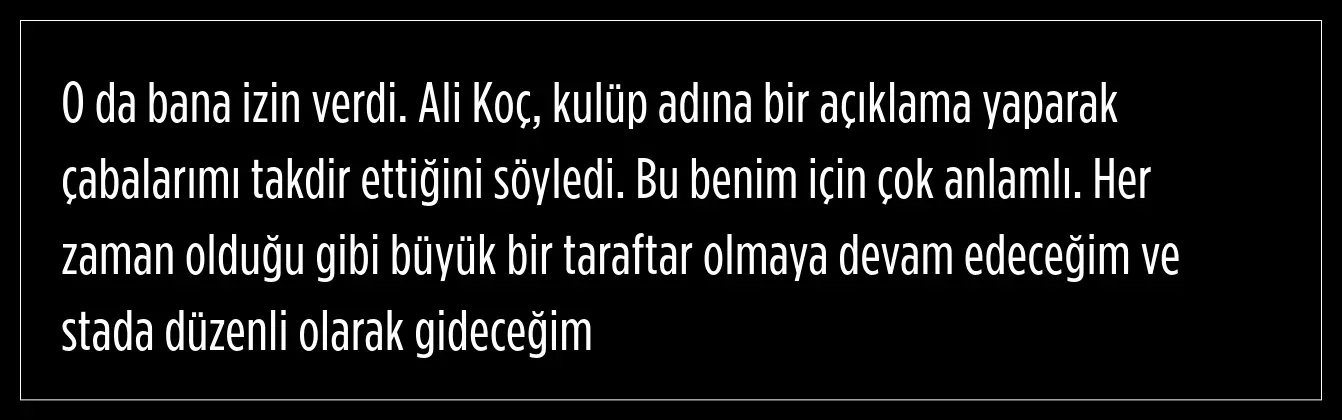 Ayrılışıyla ilgili herhangi bir yorum yapmak istemediğini, ayrılmaya karar vererek Ali Koç'tan izin istediğini dile getiren ünlü isim, şöyle devam etti: