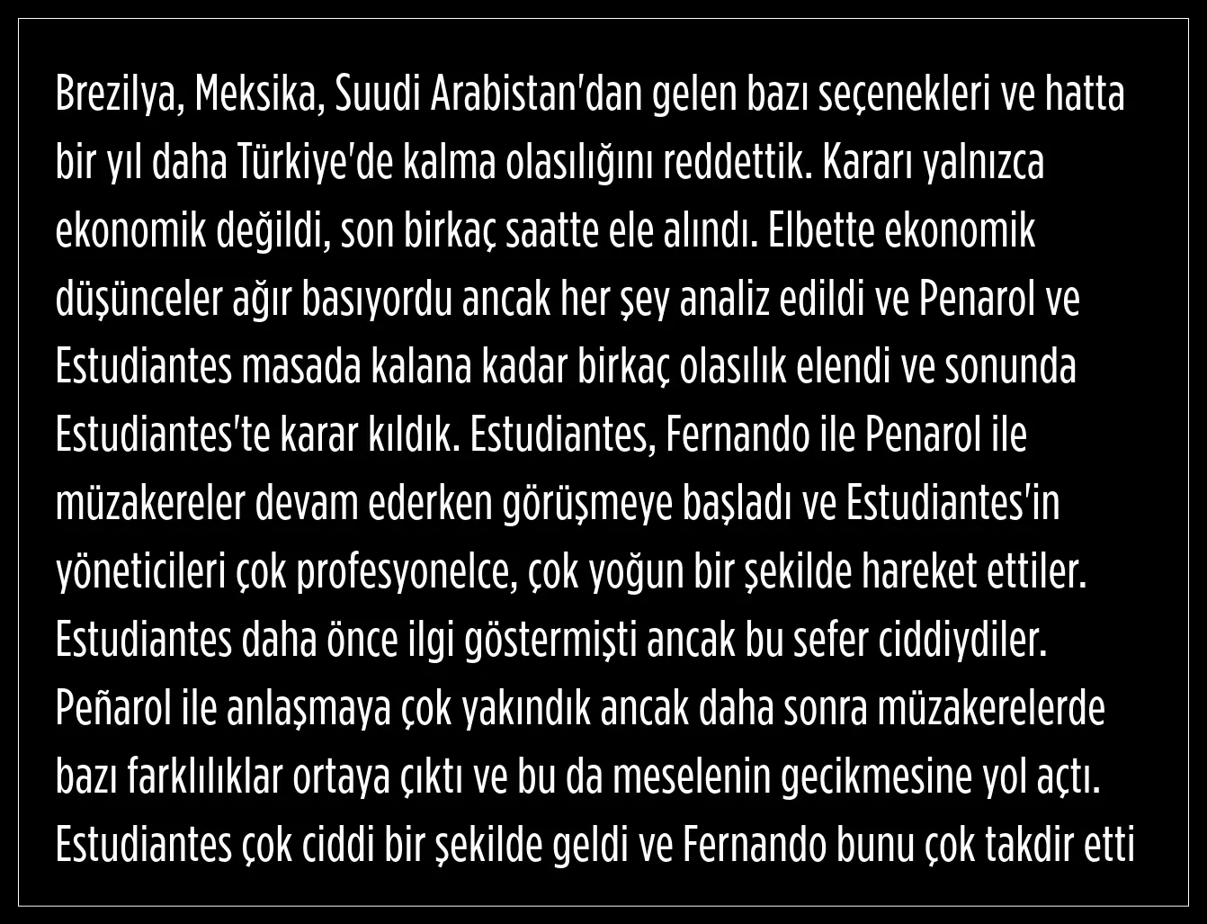 Estudiantes'in yöneticilerin çok çok profesyonelce, çok yoğun bir şekilde hareket ettiklerini aktaran menajer, "Estudiantes daha önce ilgi göstermişti ancak bu sefer ciddiydiler" dedi.