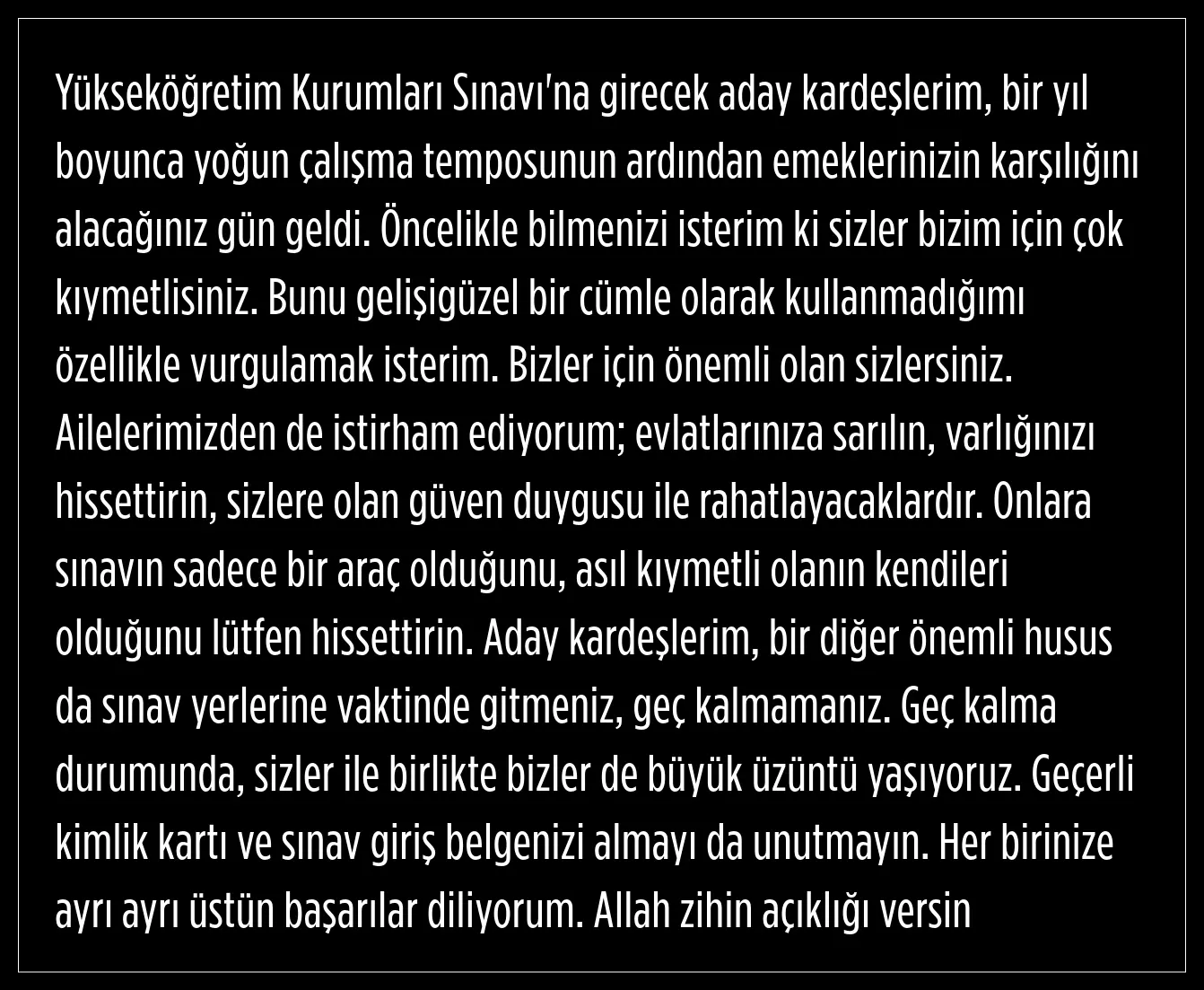 "SINAV YERİNE VAKTİNDE GİDİN"