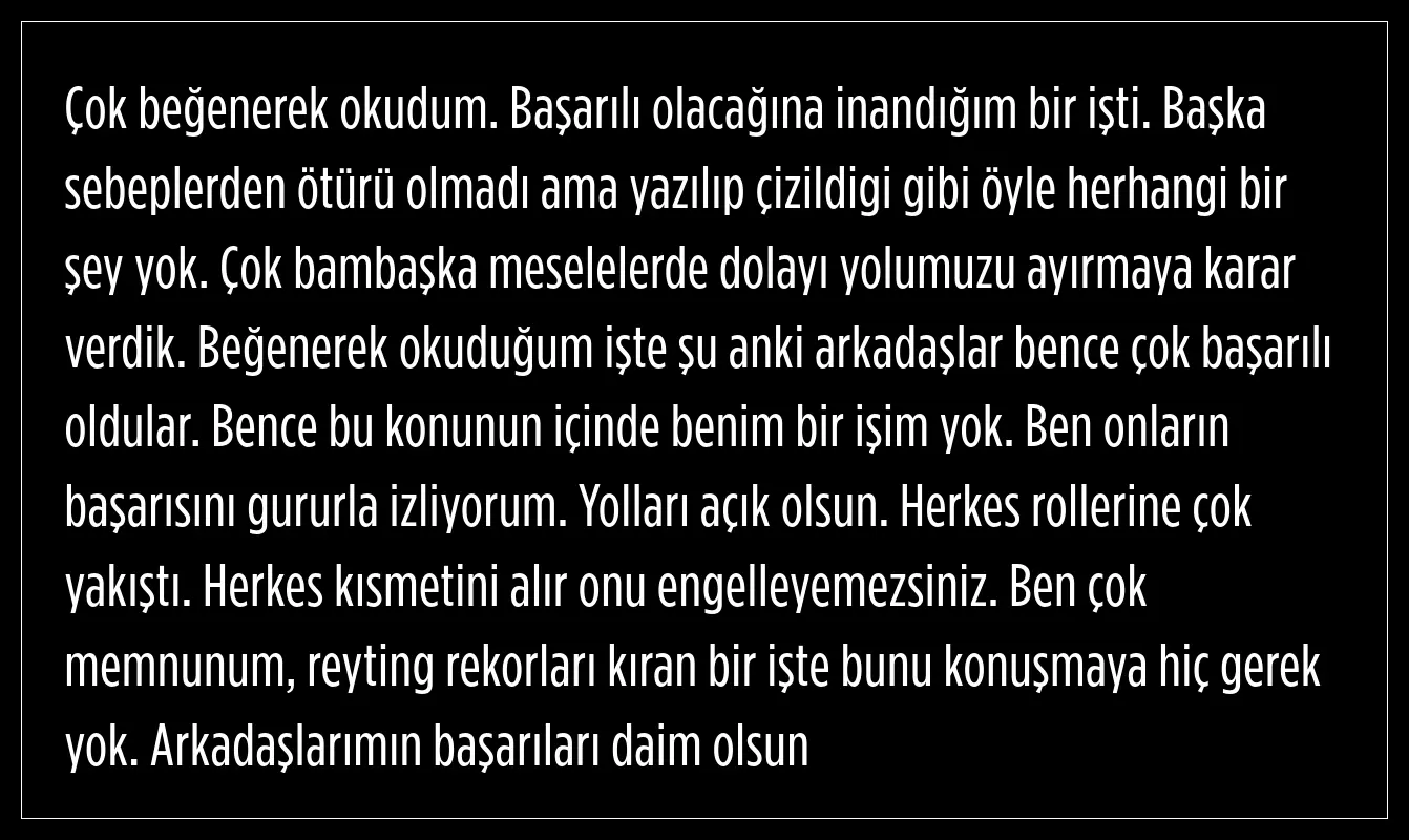 Çok beğenerek okuduğunu ve başarılı olacağına inandığı bir iş olduğunu ifade eden Esra Bilgiç, başka bir sebepten ötürü olmadığını söyledi.