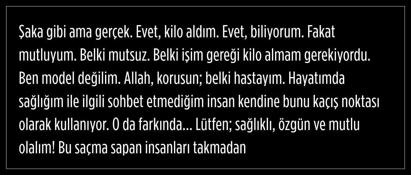 Sosyal medyayı aktif kullanan ünlü isimlerden birisi olan Özberk'e bir takipçisi, "Daha kilo alma" yorumunda bulundu.