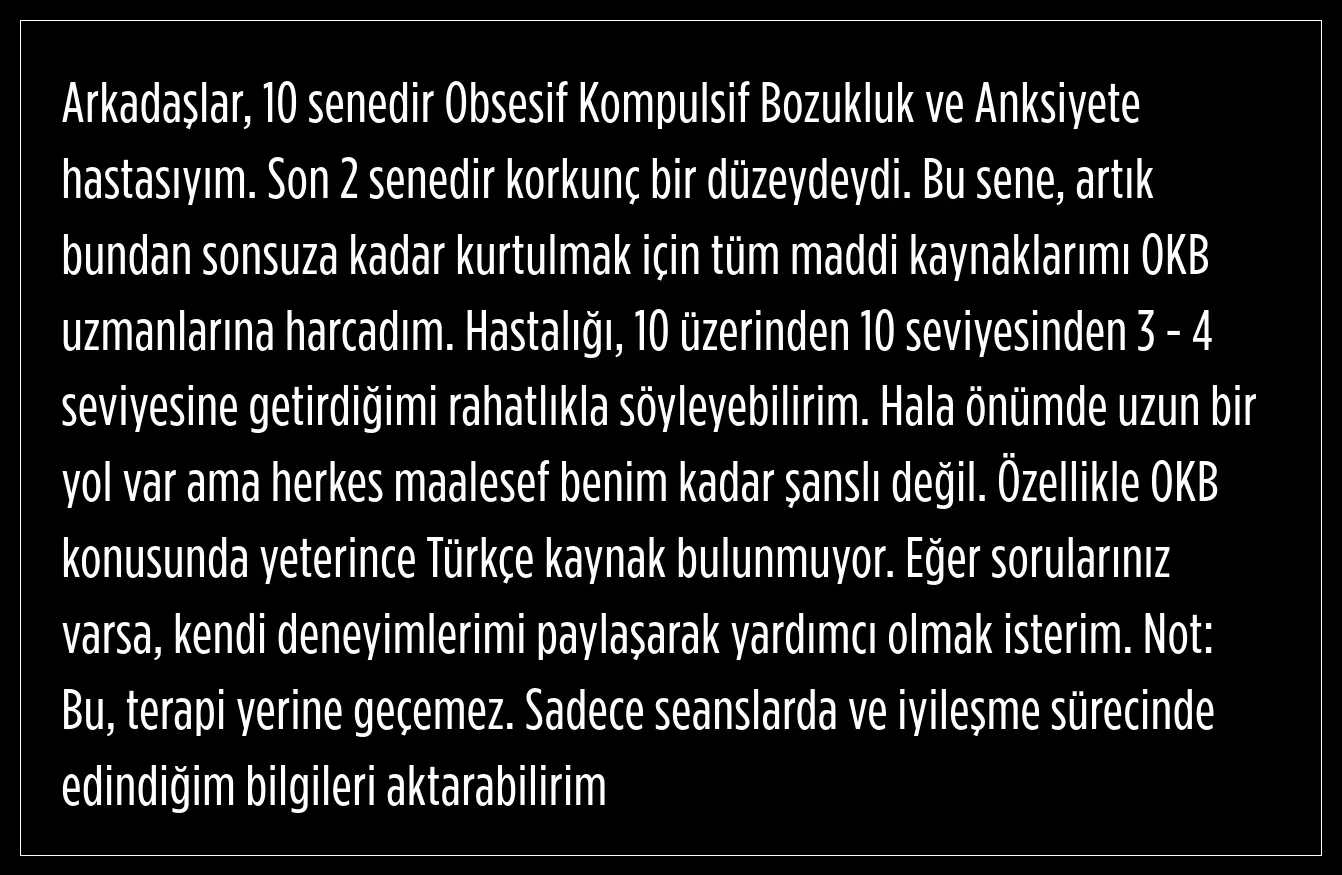 Oyuncu, 10 senedir Obsesif Kompulsif Bozukluk ve Anksiyete hastası olduğunu ve son 2 senedir korkunç bir düzeyde olduğunu söyledi.