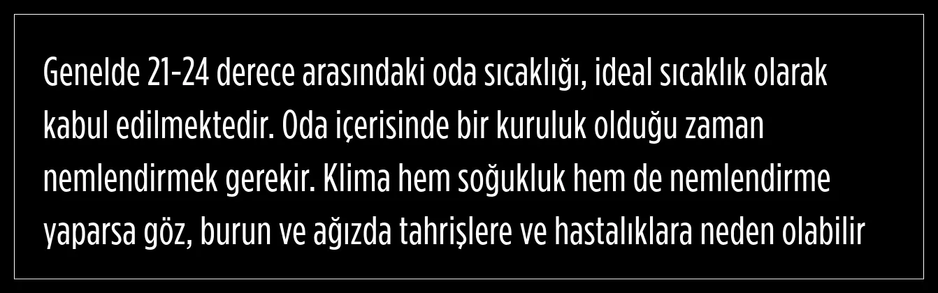 "21-24 derece arasındaki oda sıcaklığı, ideal sıcaklık olarak kabul edilmektedir"