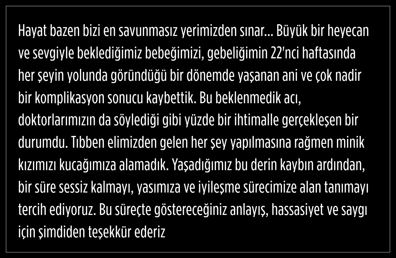 Ege Kökenli, gebeliğinin 22'nci haftasında bebeklerini kaybettiğini açıkladı.