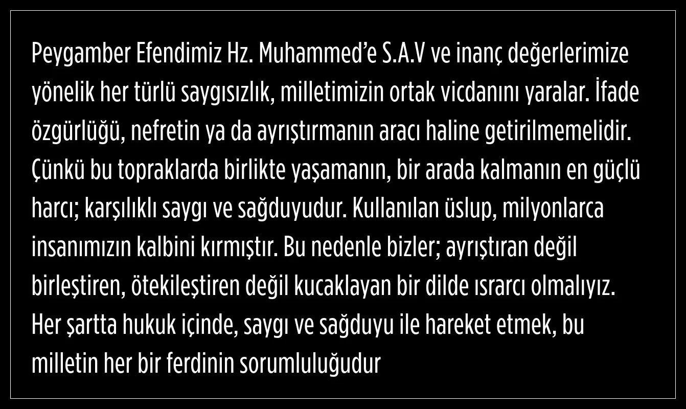 "her türlü saygısızlık, milletimizin ortak vicdanını yaralar"