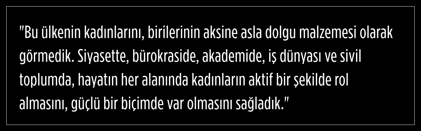 Cumhurbaşkanı Erdoğan: Kadınları dolgu malzemesi olarak görmedik