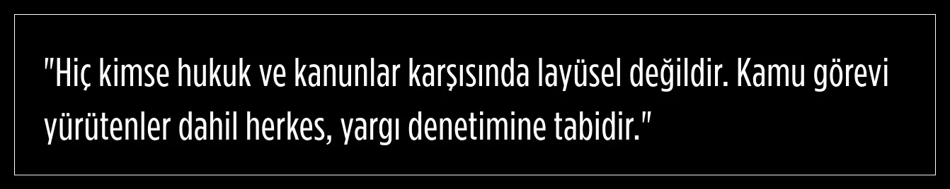 Cumhuriyet Başsavcılıklarınca elde edilen deliller doğrultusunda, şüpheli durumdaki kişilerin savunma haklarının güvence altında bulunduğunu vurgulayan Tunç, hukuk karşısında hiç kimsenin ayrıcalıklı olamayacağını kaydetti. Tunç, kamu görevini yürüten kişilerin de yargı denetimine tabi olduğunu şu ifadelerle dile getirdi: