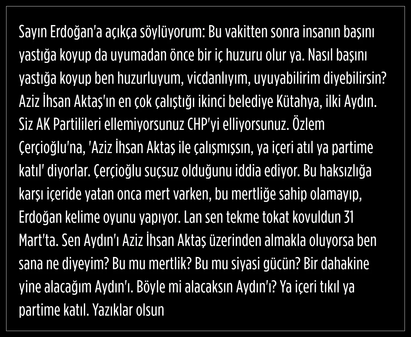 Özel, şunları söyledi: