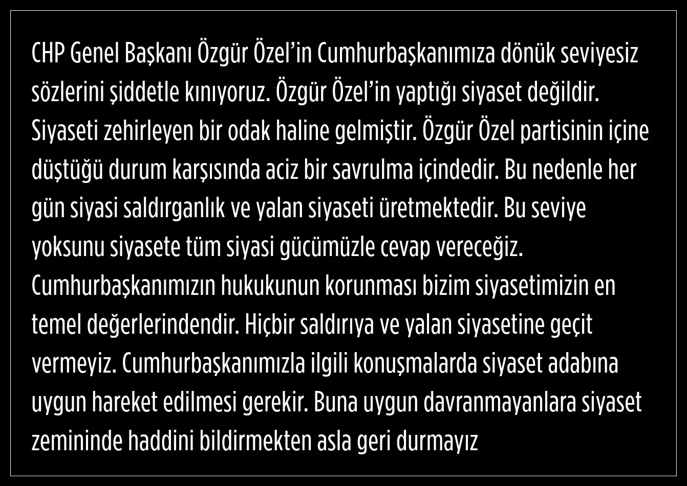 Özgür Özel, açıklamalarında Cumhurbaşkanı Recep Tayyip Erdoğan'a yönelik ifadeler kullandı.