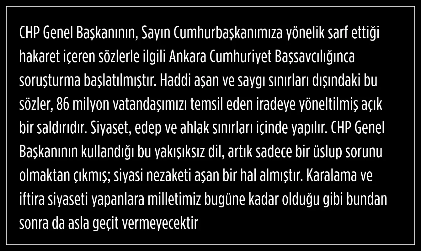 Tunç, CHP Genel Başkanının kullandığı bu yakışıksız dilin artık sadece bir üslup sorunu olmaktan çıktığını, siyasi nezaketi aşan bir hal aldığını kaydetti.