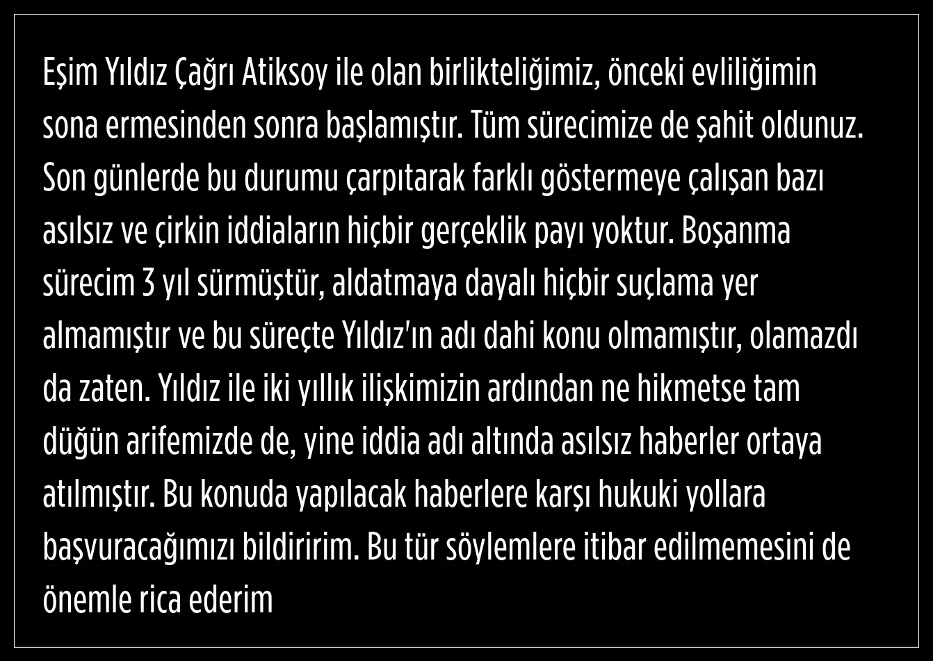Ünlü isim, son günlerde bu durumu çarpıtarak farklı göstermeye çalışan bazı asılsız ve çirkin iddiaların hiçbir gerçeklik payının olmadığını söyledi.