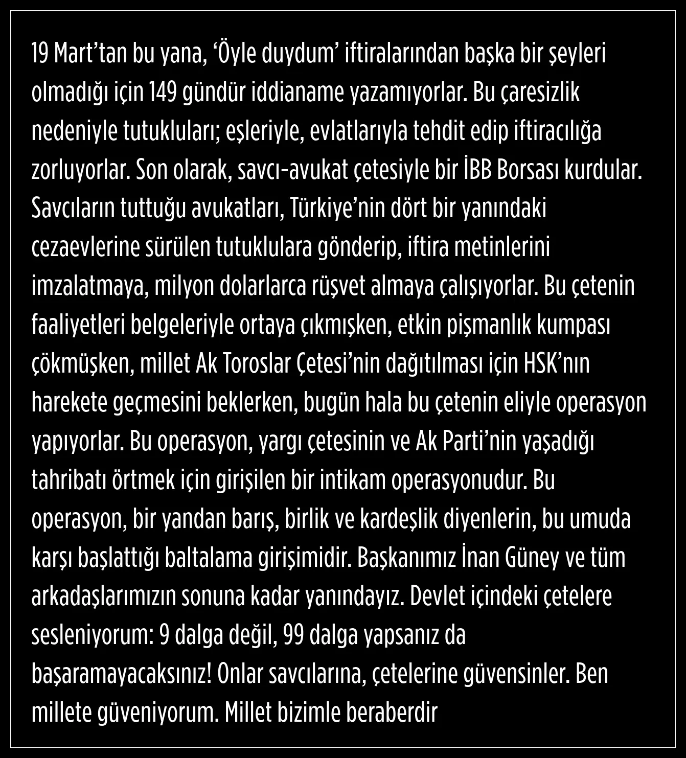 "9 dalga değil, 99 dalga yapsanız da başaramayacaksınız"