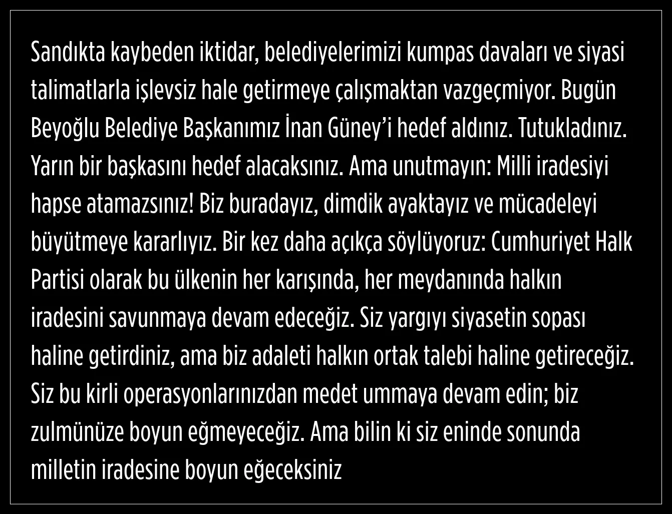 CHP'li Beyoğlu Belediye Başkanı İnan Güney, tutuklandı. Ankara Milletvekillerinden Güney'in tutuklanmasına yönelik tepkiler art arda geldi.