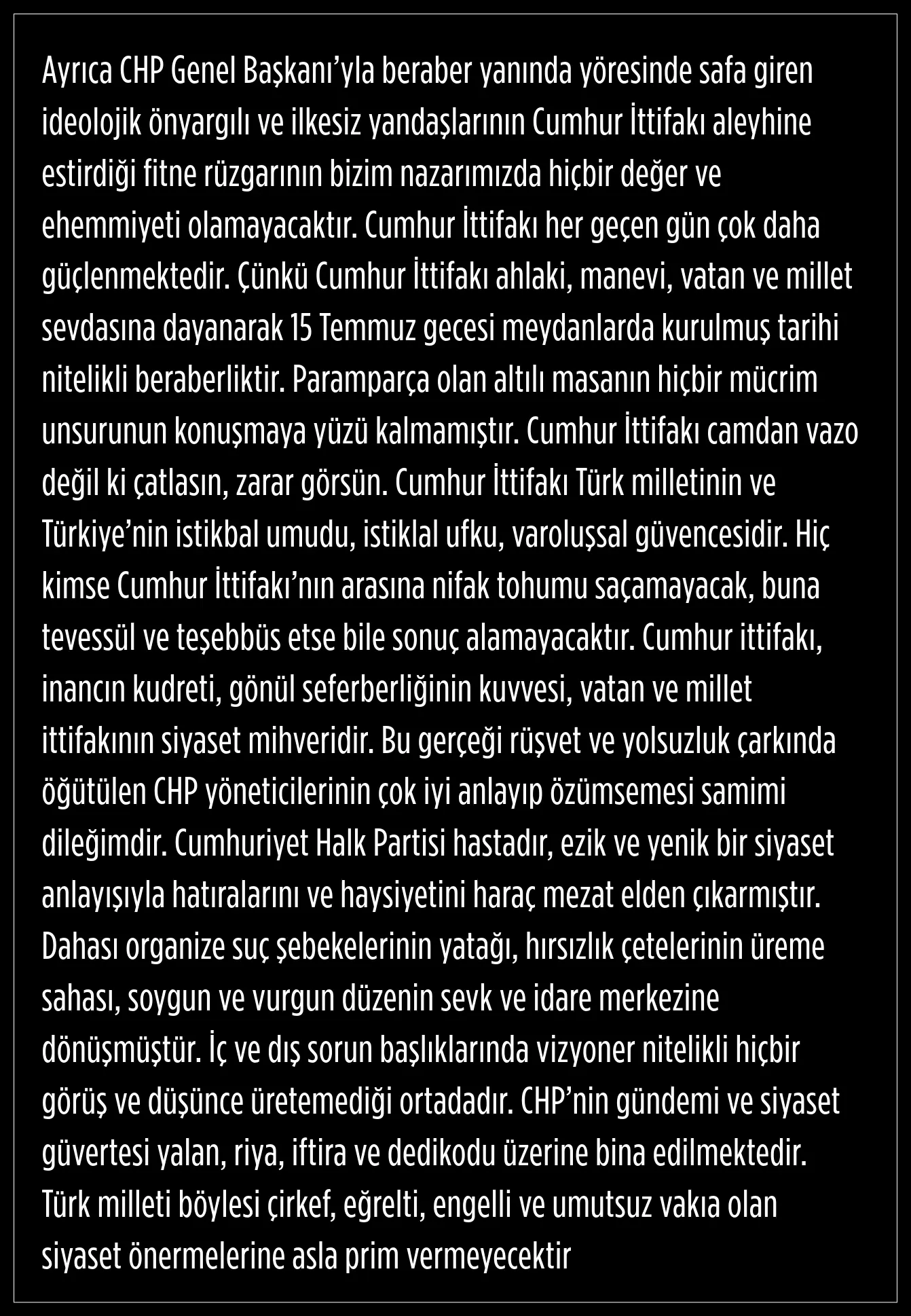 "Cumhur İttifakı aleyhine estirdiği fitne rüzgarının bizim nazarımızda değer ve ehemmiyeti olamayacak"