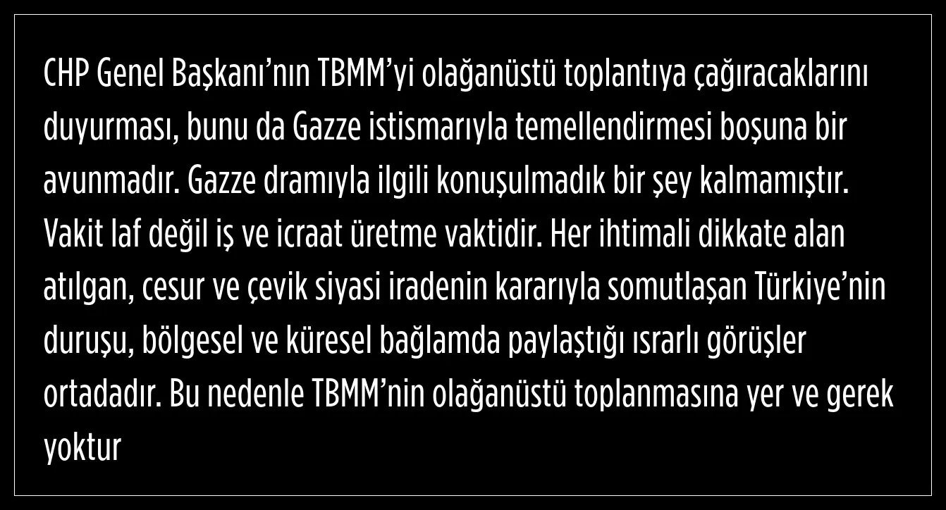 "TBMM’nin olağanüstü toplanmasına yer ve gerek yoktur"