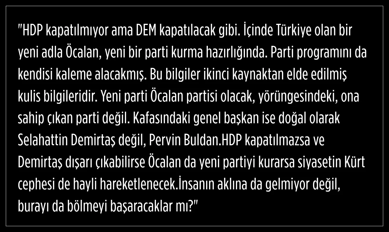 Öcalan’ın yeni parti kuracağı yönündeki kulis bilgilerini kamuoyuna taşıyan Bozkurt, ayrıca şu ifadeleri kullandı: