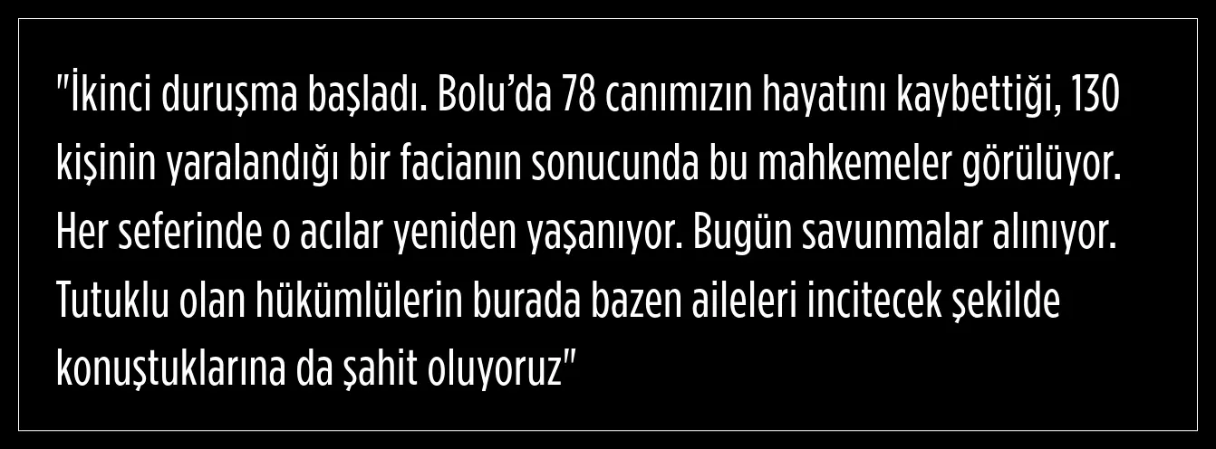 Bolu’daki Kartalkaya Otel yangını davasında TBMM komisyon üyesi Tuba Köksal, sürecin ailelerle birlikte yakından takip edildiğini ve acıların her duruşmada yeniden yaşandığını açıkladı.