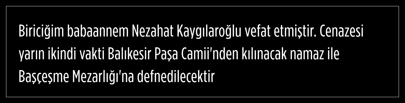 Oyuncunun babaannesi Nezahat Kaygılaroğlu hayatını kaybetti.