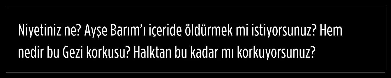 Ayşe Barım’ı içeride öldürmek mi istiyorsunuz? nedir bu Gezi korkusu?
