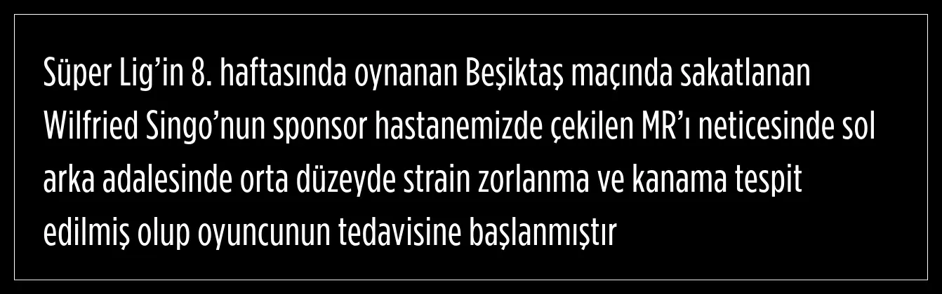 Açıklamada, Wilfried Singo’nun çekilen MR’ı neticesinde sol arka adalesinde orta düzeyde zorlanma ve kanama tespit edildiği ve oyuncunun tedavisine başlandığı belirtildi.
