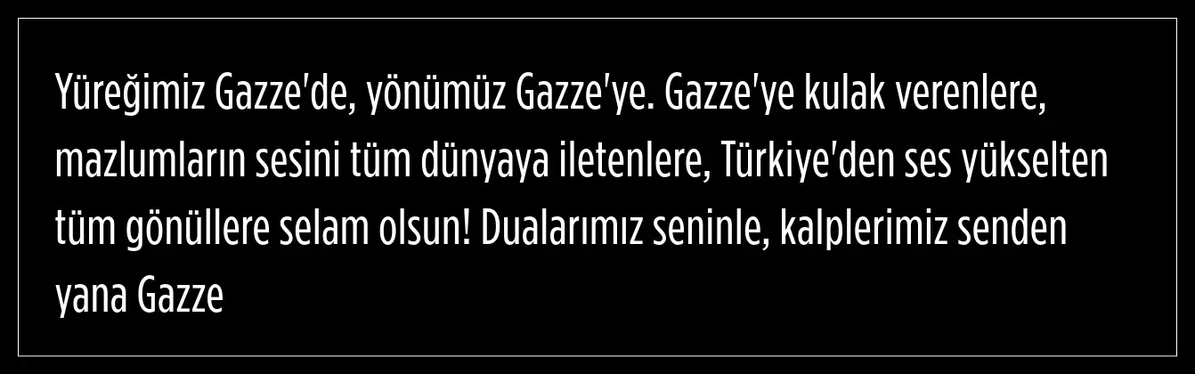 "Dualarımız seninle, kalplerimiz senden yana Gazze"