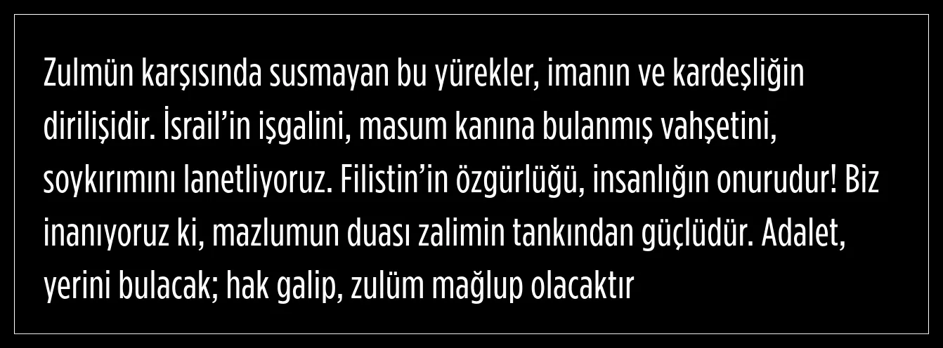"İsrail’in işgalini, masum kanına bulanmış vahşetini, soykırımını lanetliyoruz"
