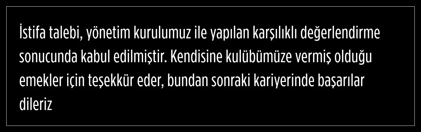 "Kendisine kulübümüze vermiş olduğu emekler için teşekkür ederiz"