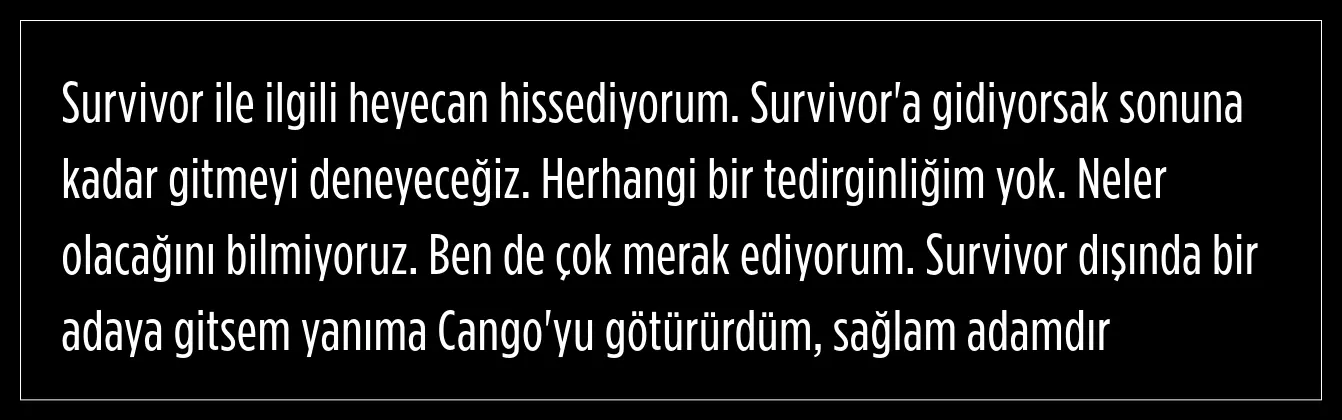 Survivor ile ilgili heyecanlı olduğunu ifade eden Bayhan, sonuna kadar mücadele vereceğini kaydetti.