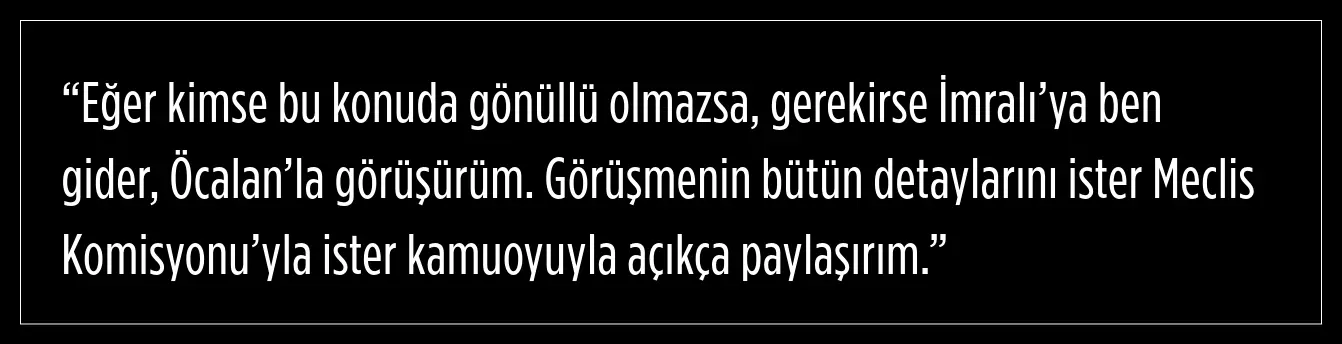 Bülent Arınç, olası bir İmralı ziyaretinin sadece bireysel değil, kolektif bir girişim olması gerektiğini ifade etti. Görüşmelerin siyasi partilerden temsilcilerin ve toplumda saygı gören, tarafsız devlet adamlarının katılımıyla yürütülmesinin sürecin meşruiyetini artıracağını ileri sürdü. Arınç, “Barış ancak ortak akıl ve şeffaf bir yaklaşımla sağlanabilir.” dedi.