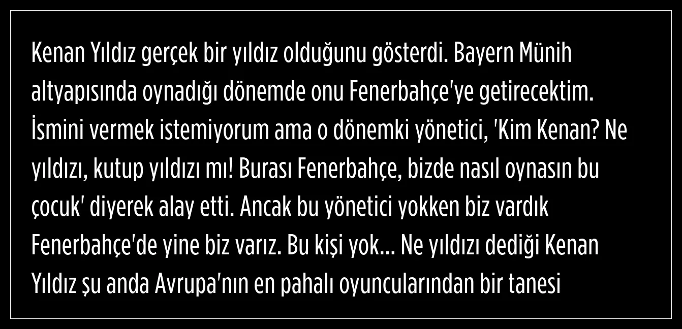 Ercan, Kenan Yıldız'ı Bayern Münih altyapısında oynadığı sırada Fenerbahçe'ye getireceğini ancak Yıldız ile dalga geçildiğini aktardı.