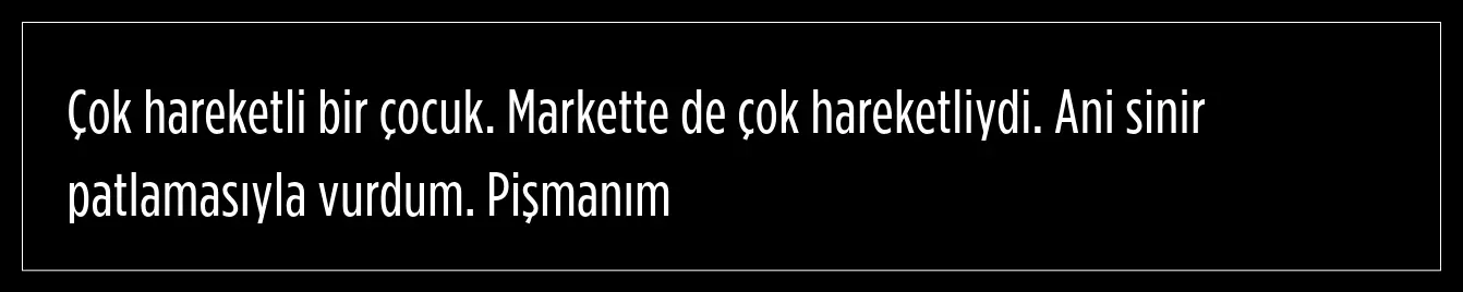 Eskişehir'de market ortasında çocuğunu teklemeyen babanın ifadesi ortaya çıktı. Ani sinir patlamasıyla vurduğunu söyleyen C.E., ''pişmanım'' dedi.