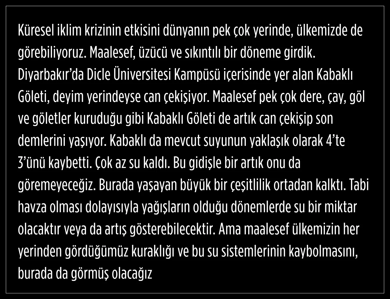 Kabaklı Göleti'nin çok az suyunun kaldığını aktaran Prof. Dr. Ahmet Kılıç, bu gidişle artık onunda görülemeyeceğini kaydetti.