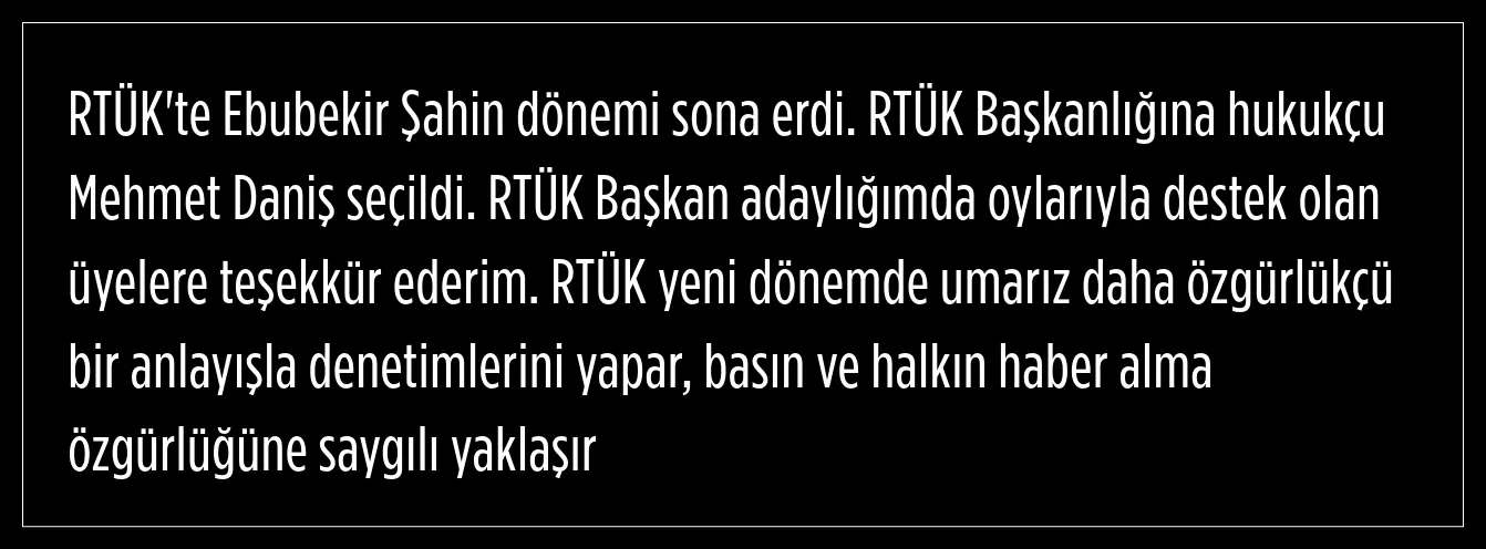 RTÜK Başkanlığı’nda Ebubekir Şahin'in dönemi sona erdi. Yapılan seçim sonucuna göre, RTÜK'te Mehmet Daniş, dönemi başlıyor.