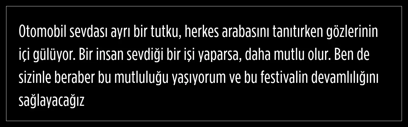 Etkinlik alanındaki klasik araçları inceleyen Şahin, sergilenen otomobillere yoğun ilgi gösterdi. Klasik bir aracın direksiyonuna geçerek kısa bir tur atan Şahin, geri vites kullanmadığını esprili bir dille ifade ederek katılımcılara keyifli anlar yaşattı.